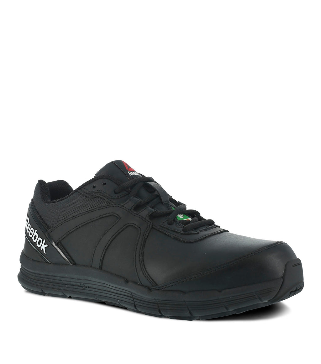Equal parts running and work, the Guide Work is built on running technology that rises to the challenge of the industrial work day. The R52 rebounding foam midsole is engineered to cushion on impact and propel you forward through toe off, keeping you going over the long haul. A MemoryTech footbed cradles the unique contours of your foot. Featuring an external TPU wrap around heel counter for additional stability and a locked in fit.
